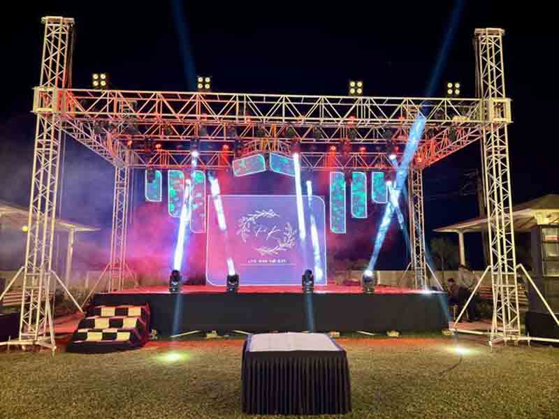लाइव प्रदर्शन: मजबूत ट्रस सिस्टम, जो शादी के बैंड, डीजे और प्रदर्शनों के लिए भारी ध्वनि उपकरण और एलईडी स्क्रीन रखने के लिए डिज़ाइन किया गया है।